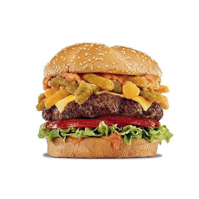 - Ingredients: Stacked high with avocado, pepper Jack, red onion, roasted jalapeños, tomato & pickles
