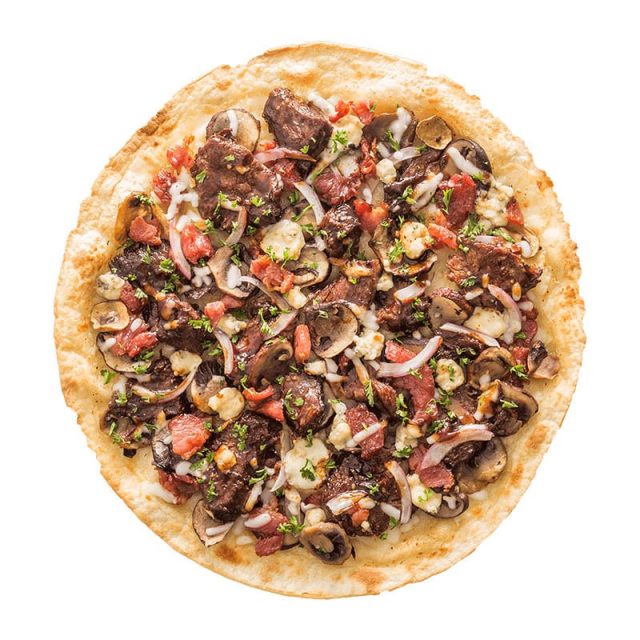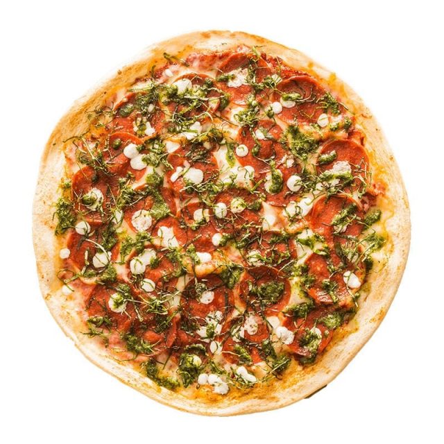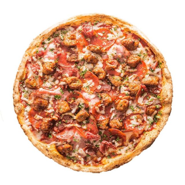 - Ingredients: Tomato sauce, fior di latte mozzarella, parmigiano, bacon, ham, basil, extra virgin olive oil